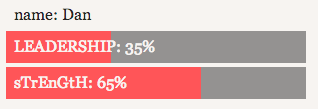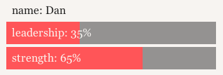 在前一示例中,图表显示的“name”、“leadership”和“strength”均为小写形式;通常此类数值应采用“首字母大写格式”(类似新闻标题的书写规范)。