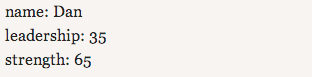 但你也可以为变量赋予不同的名称。也许你想使用更具诗意的标签,比如将“力量”改为“筋骨之力”;将“领导力”改为“蛇之舌”;将“姓名”改为“战斗代号”。你可以这样编写: